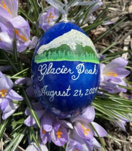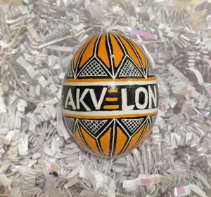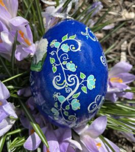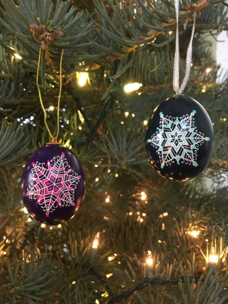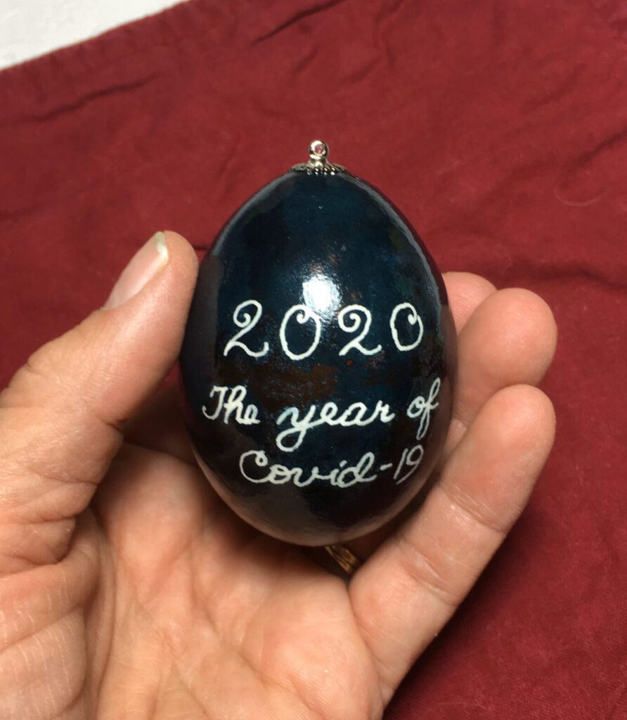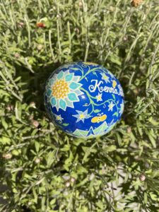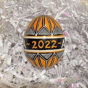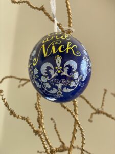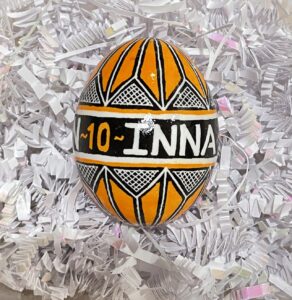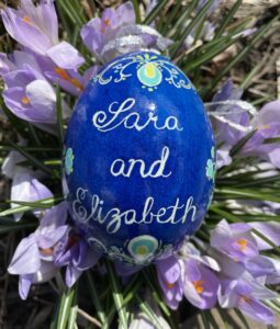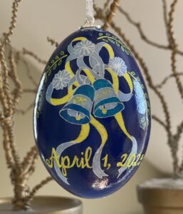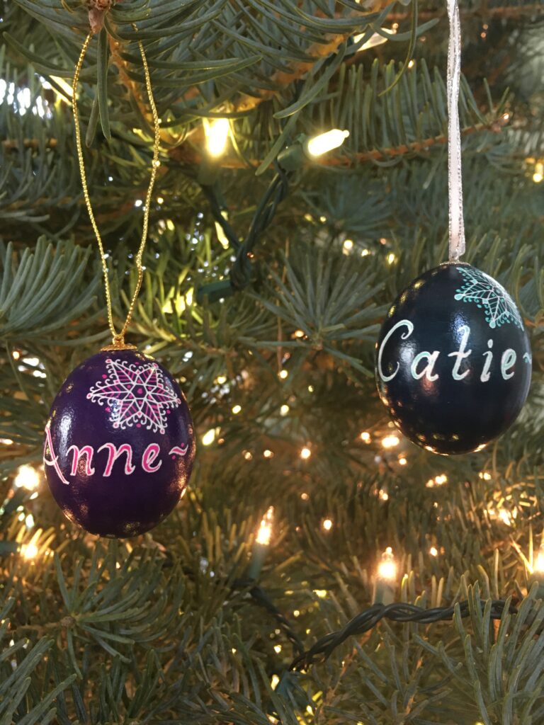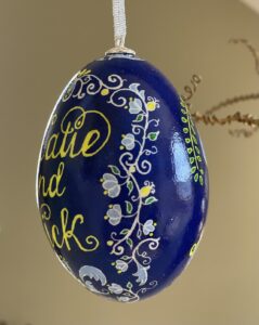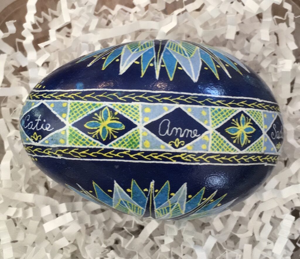 Gift for a grandmother – grandchildren’s names listed around the side. 32 point star on the front and back of the goose egg.